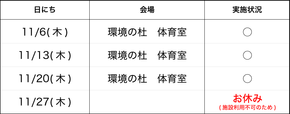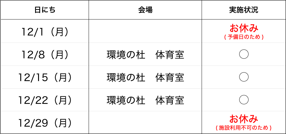 開催曜日 と時間 火曜日 16:10~17:40 火曜日 17:20~18:50