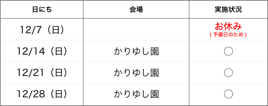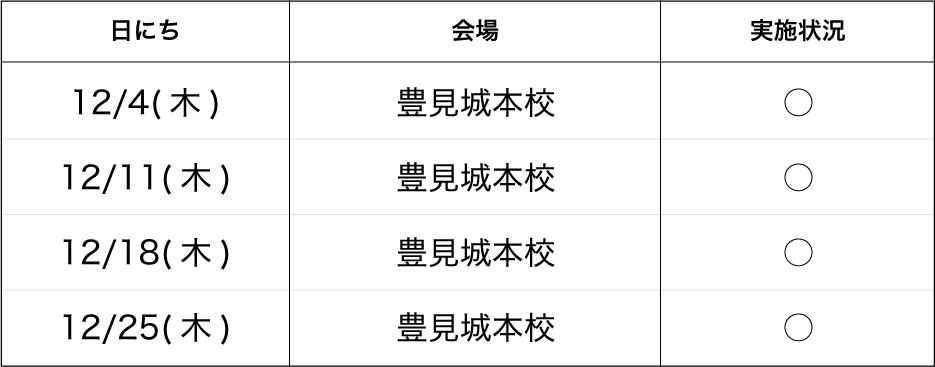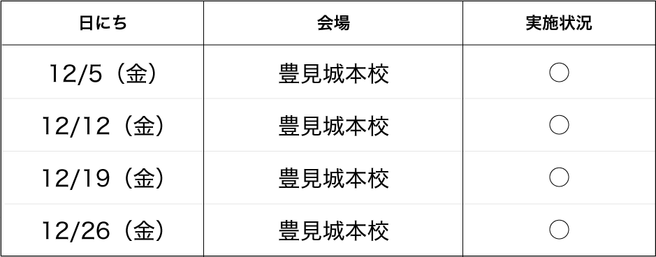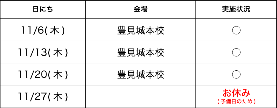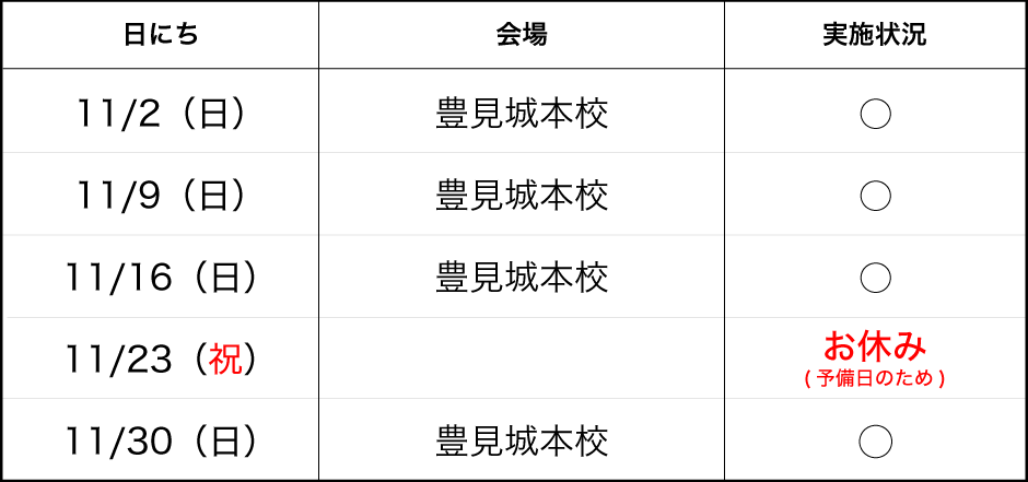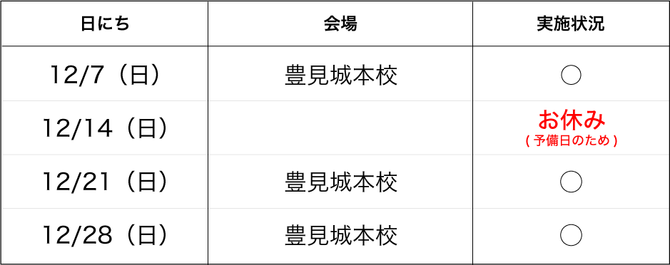 開催曜日 と時間 日曜日 9:10~10:40 日曜日 10:20~11:50